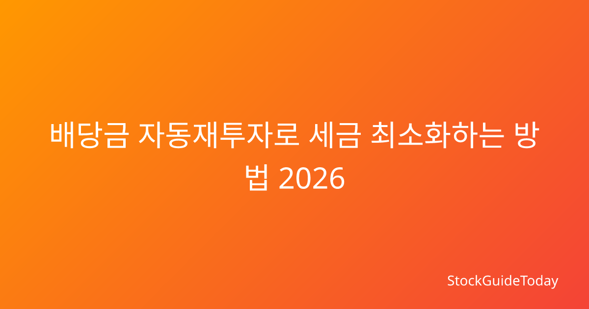 배당금 자동재투자로 세금 최소화하는 방법 2026