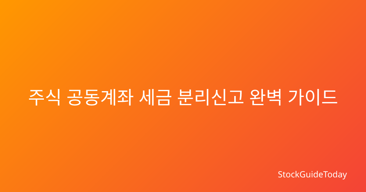 2026년 주식 공동계좌 세금 분리신고 방법을 실제 사례와 함께 완벽 정리. 필요 서류, 신청 절차, 주의사항까지 한번에 해결하세요.