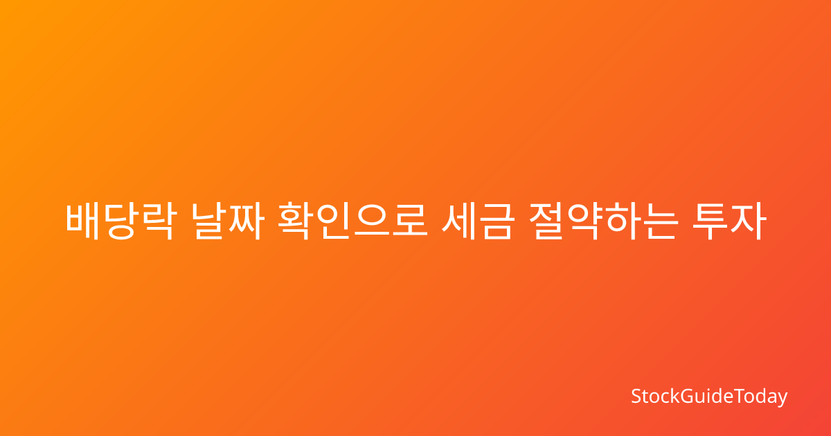 2026년 배당락 날짜 확인부터 배당소득세 최적화까지, 배당주 투자의 핵심 타이밍과 세금 절약 전략을 실제 사례로 완벽 정리했습니다.